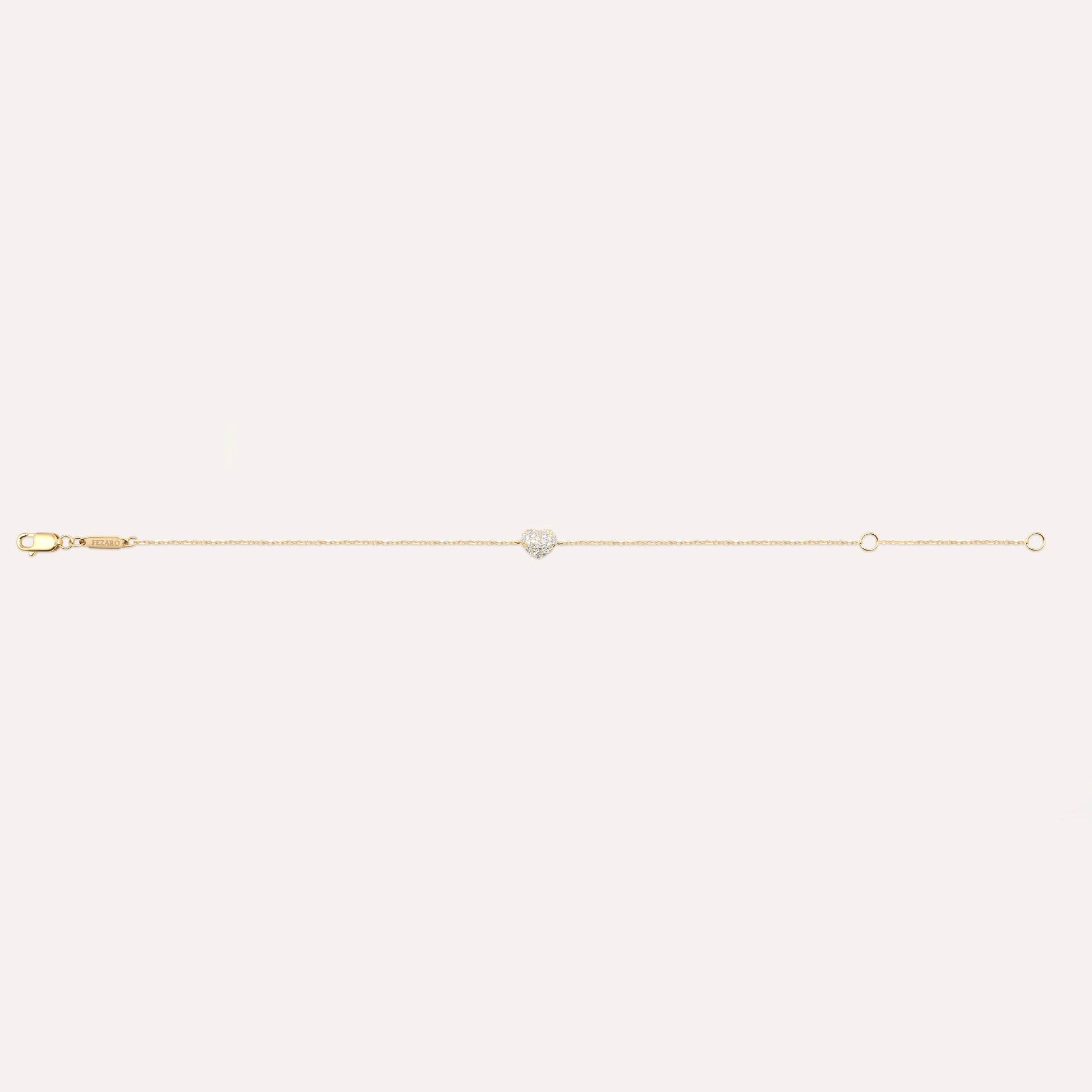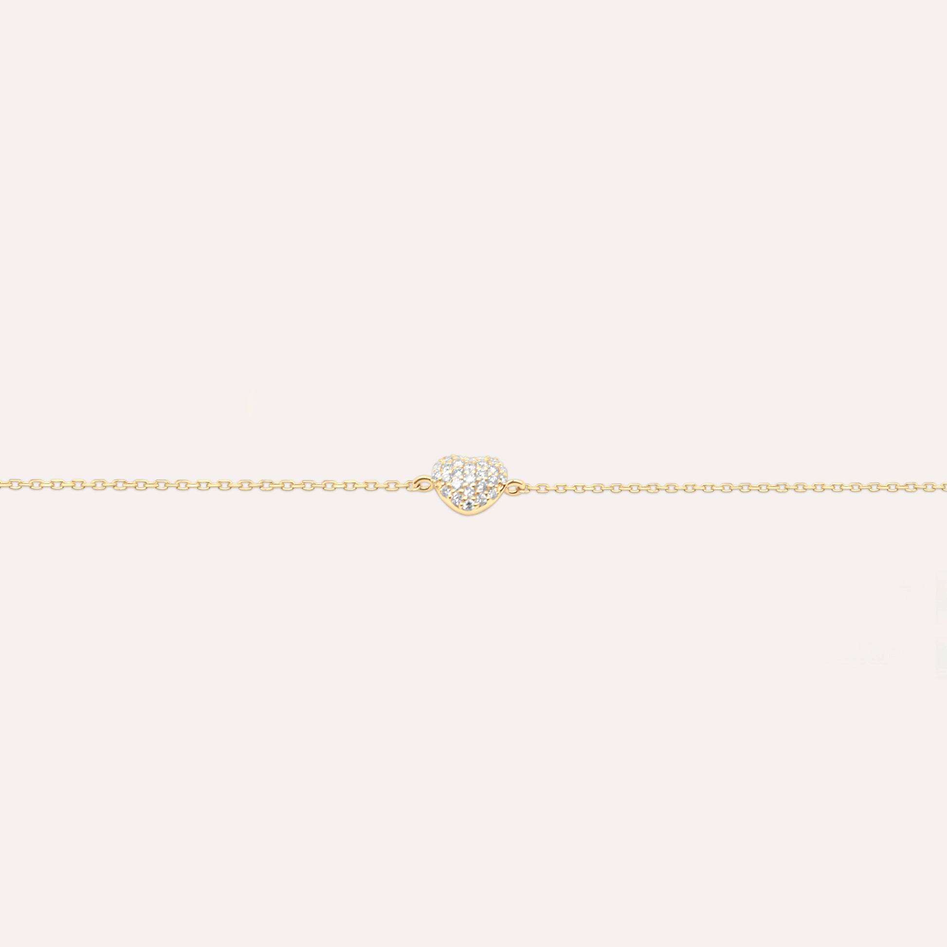 A symbol of love, crafted in luxury — the Fezaro Diamond and Gold Heart Bracelet blends timeless elegance with delicate charm. Made from 18K yellow gold, this dainty bracelet features a heart-shaped motif adorned with brilliant pave-set diamonds, capturing light and attention in every glance.