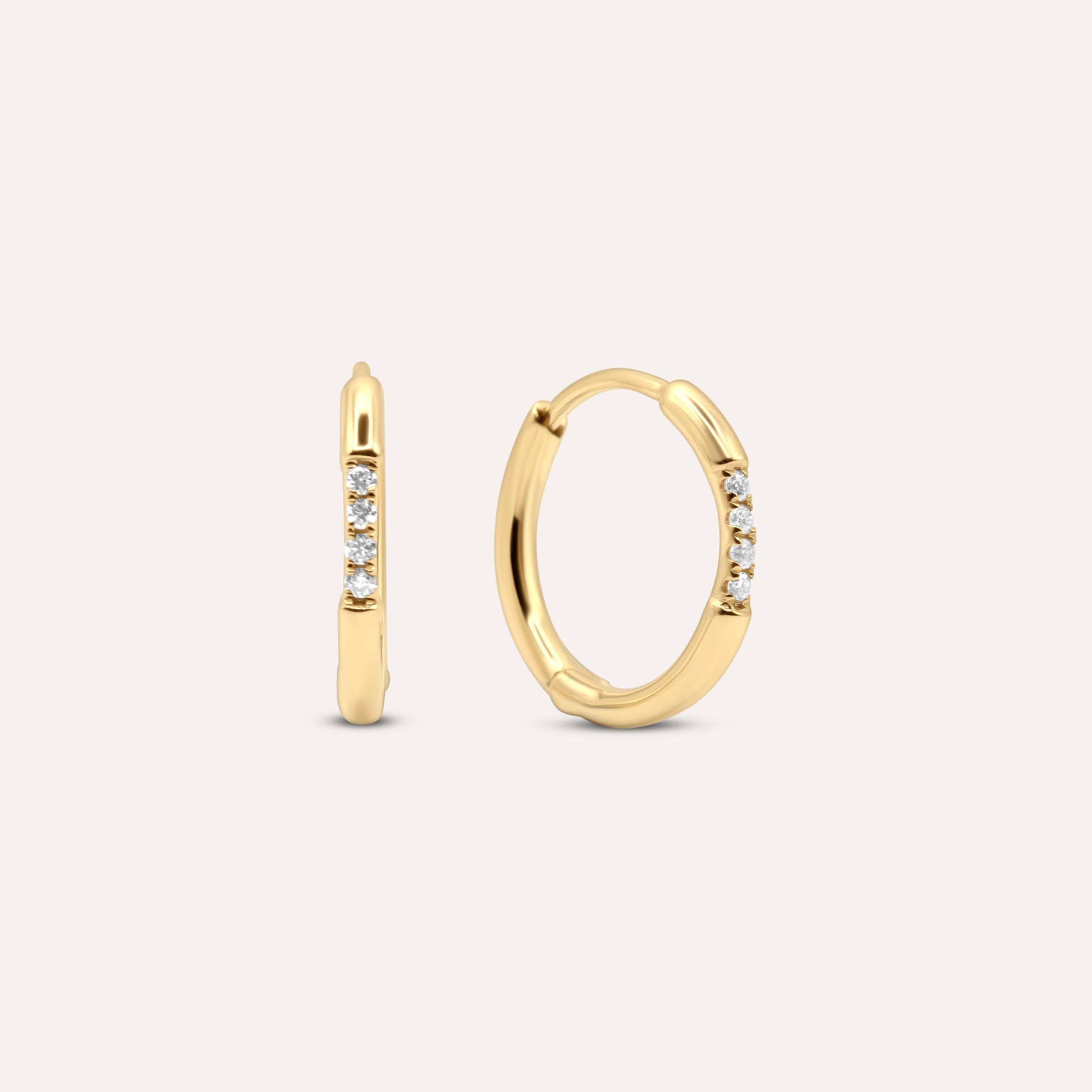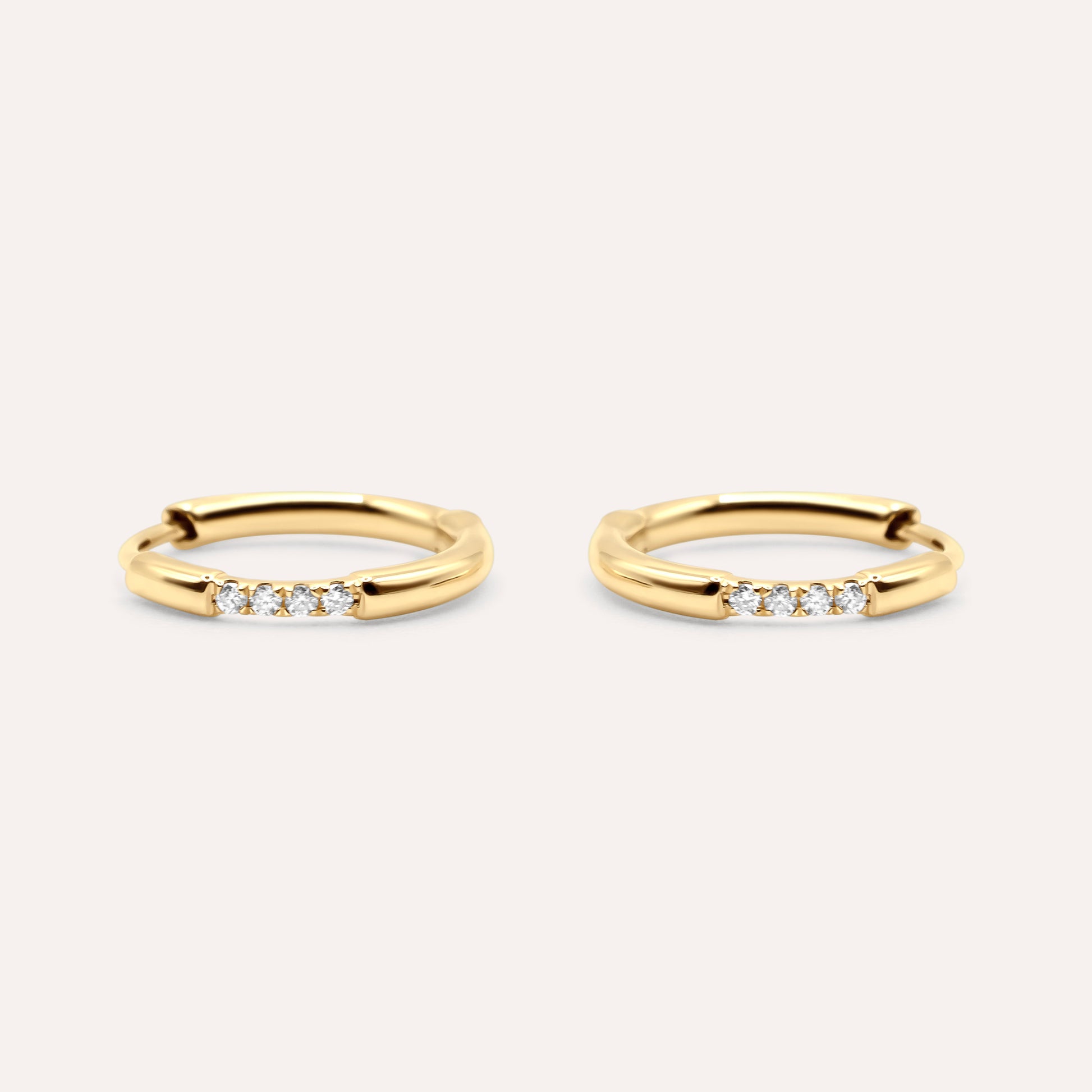 Delicate in scale but rich in brilliance, the Mini Vela Hoops offer a subtle yet striking touch of everyday elegance. Crafted in 18kt gold and adorned with a fine line of brilliant-cut diamonds, these hoops shimmer with quiet sophistication — inspired by the graceful movement of sails in the wind.