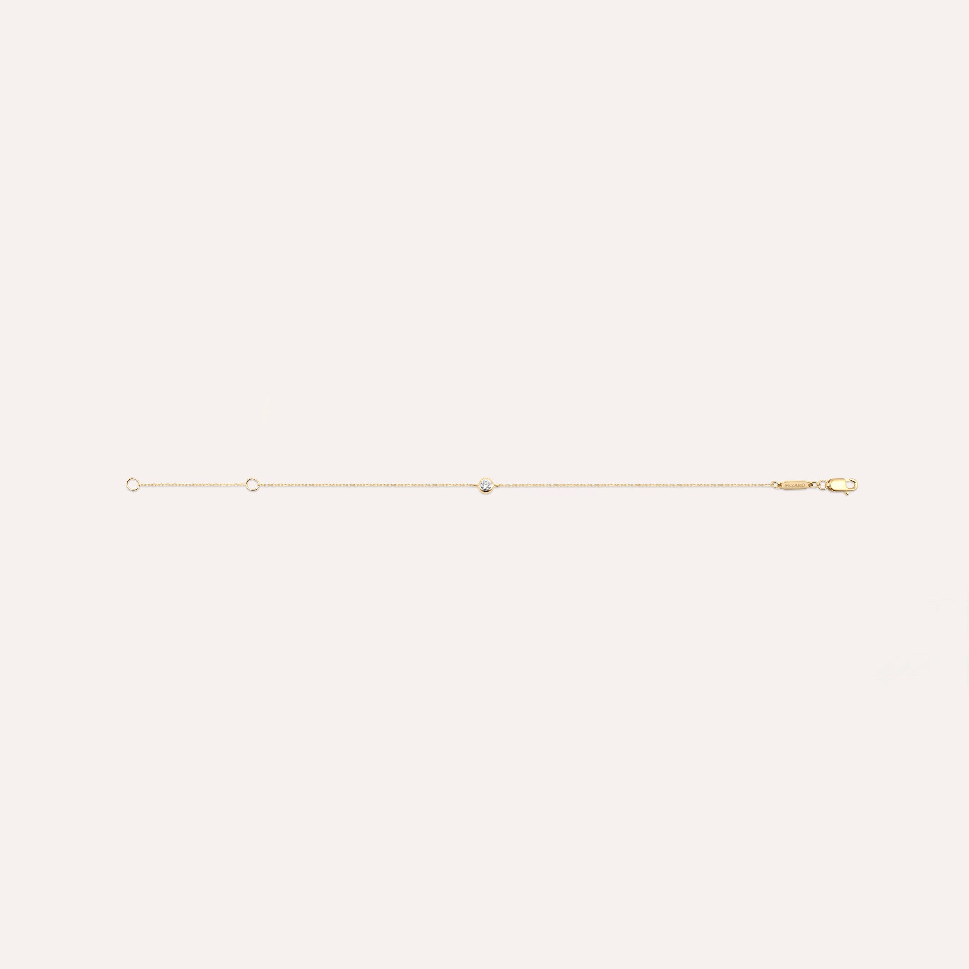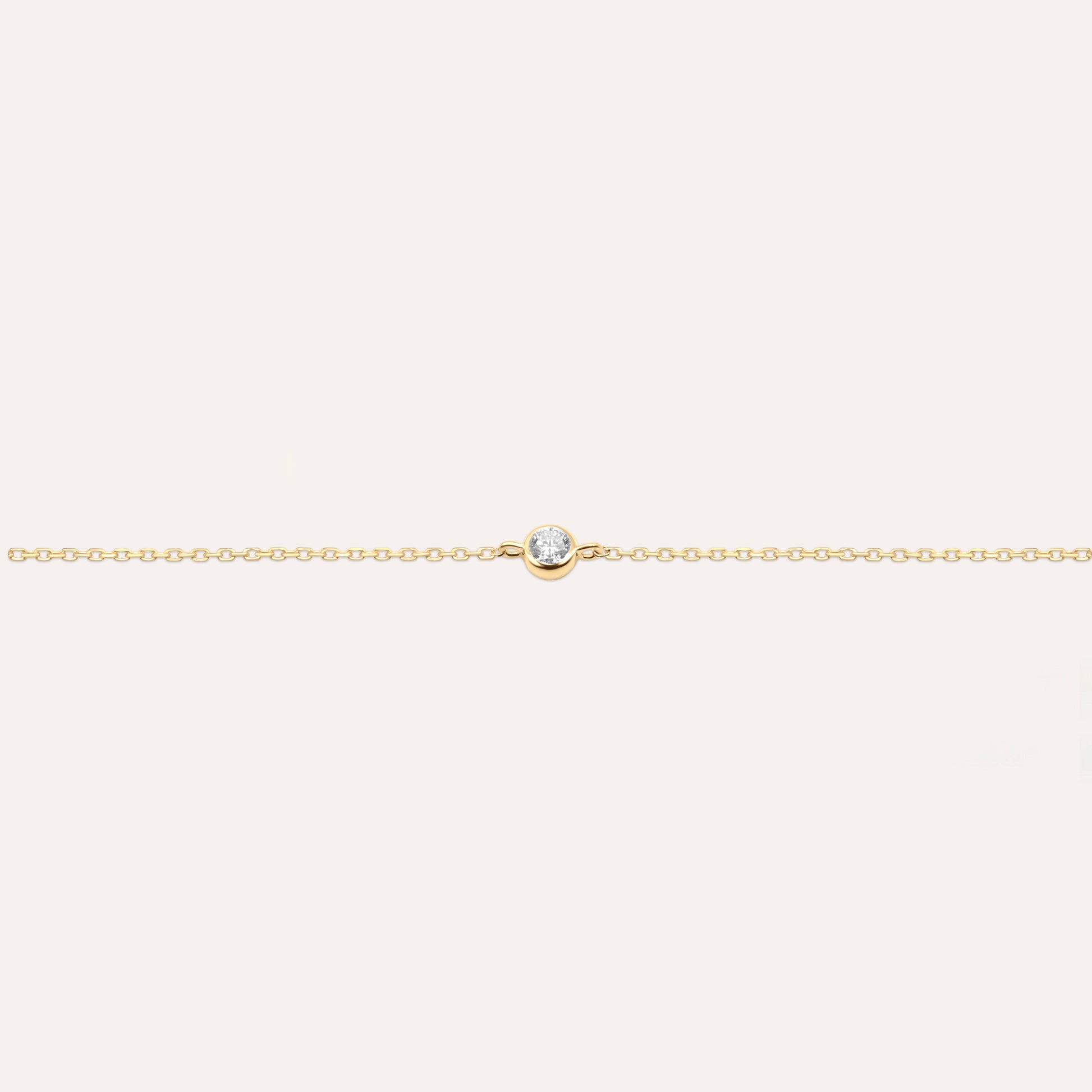 A perfect balance of presence and grace, the Fezaro Medium Elia Bracelet redefines refined luxury. Crafted in glowing 18K yellow gold, this elegant piece showcases a medium-sized round brilliant diamond, bezel-set at the center of a sleek gold chain — offering a more pronounced sparkle while maintaining timeless simplicity.