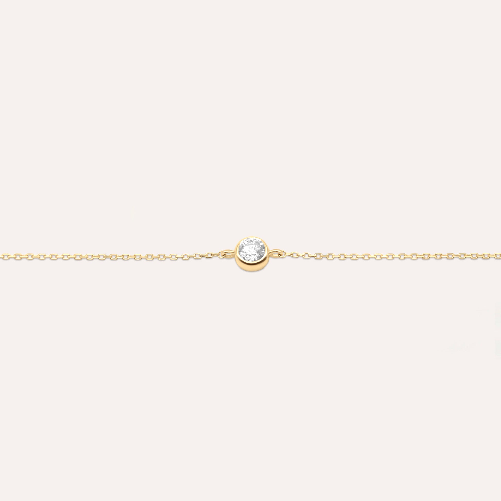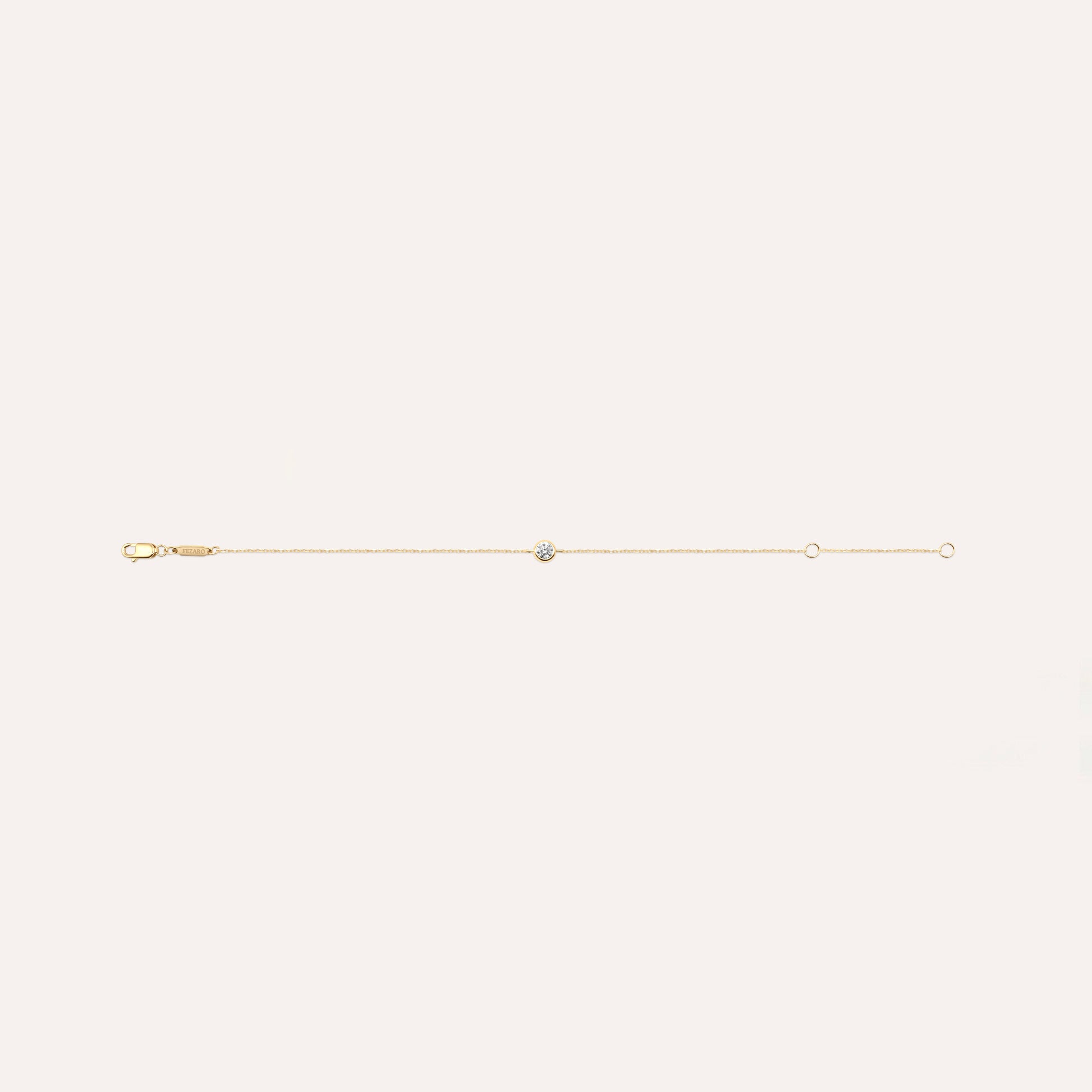 Delicate in form, radiant in presence — the Fezaro Elia Bracelet captures the beauty of simplicity with a singular spark. Crafted in 18K yellow gold, this refined bracelet features a miniature round-cut diamond, bezel-set at the center of a fine gold chain, creating a soft shimmer that moves effortlessly with you.